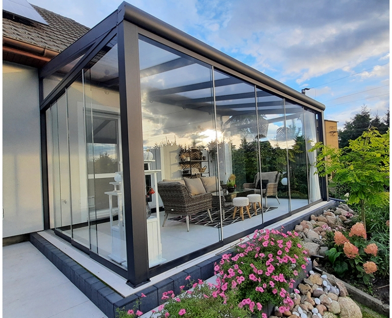 - Konstrukcja aluminiowa z solidnych profili dostosowanych do naszych warunków klimatycznych